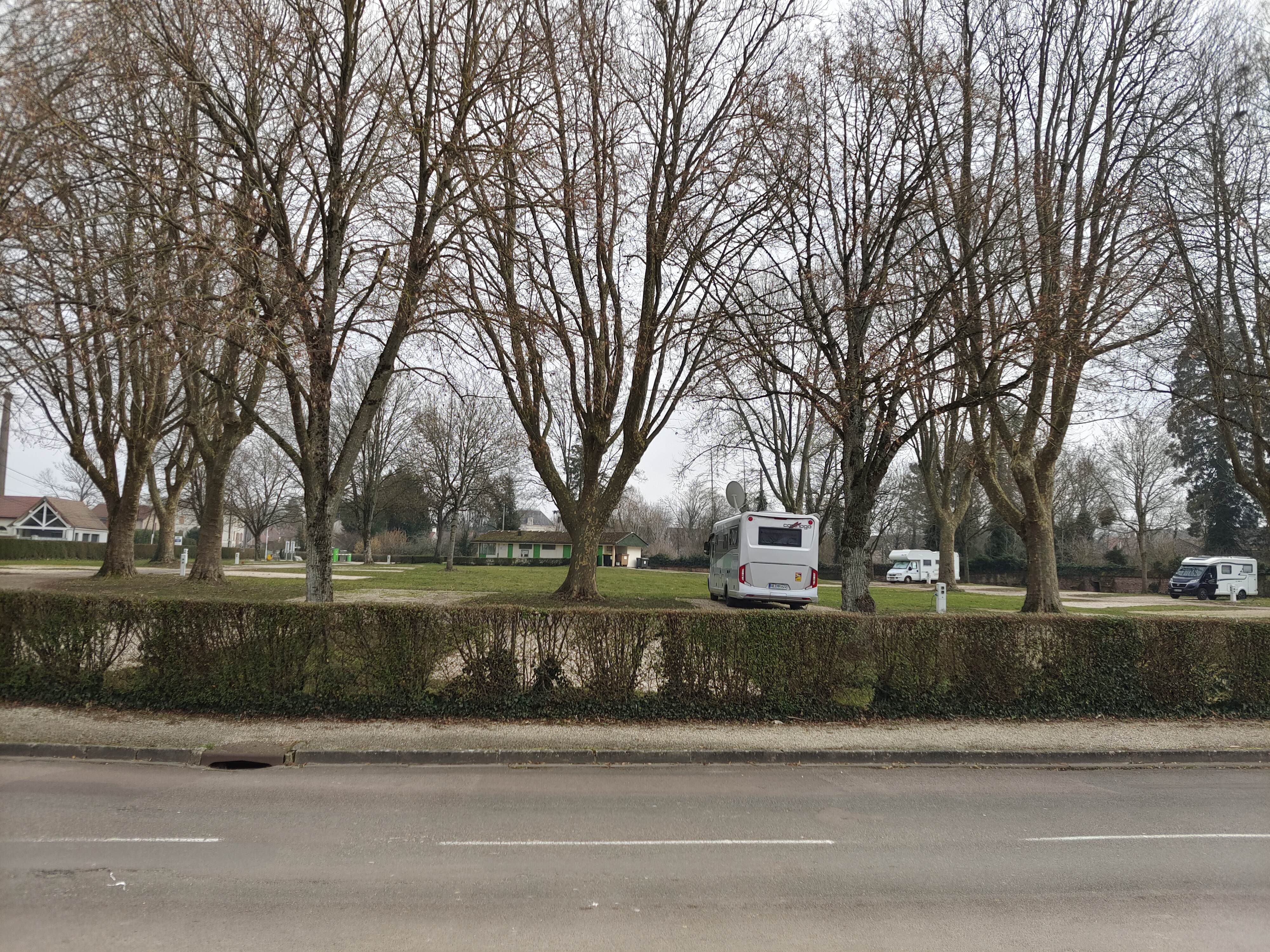 Très belle aire. Emplacements stabilisés plus partie en herbe .